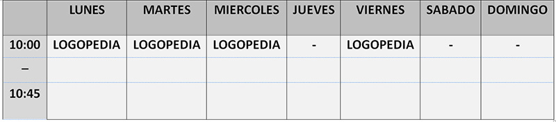 Todas las semanas se mantenía el mismo horario a excepción de las semanas en las que el paciente debía acudir a su cita médica, o se modificaban por motivos del centro.