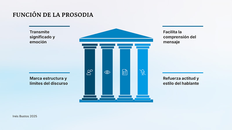 Nos gusta especialmente la definición de prosodia de Juan Moisés de la Serna, quien la define como “el componente musical del habla, y es esencial para trasmitir significado, emoción e intención al lenguaje hablado”.