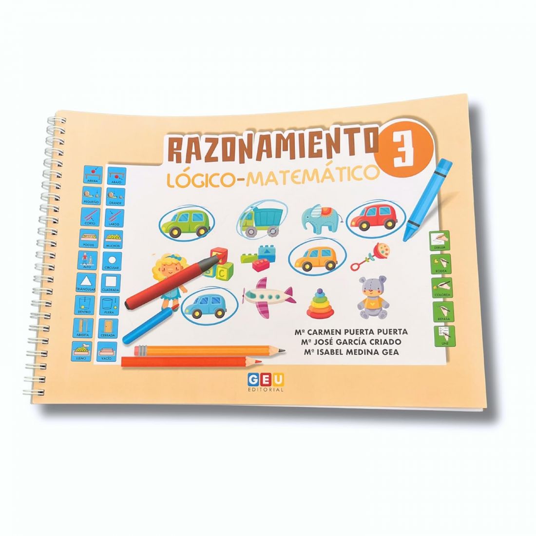 El cuaderno 3 de Razonamiento lógico-matemático está diseñado para niños a partir de los 5 años, ofreciendo una variedad de actividades que fomentan habilidades esenciales para su desarrollo cognitivo. A través de este cuaderno, tu hijo o hija aprenderá a distinguir y comprender formas geométricas como el círculo, cuadradado y triángulo, además de conceptos básicos y fundamentales en matemáticas.