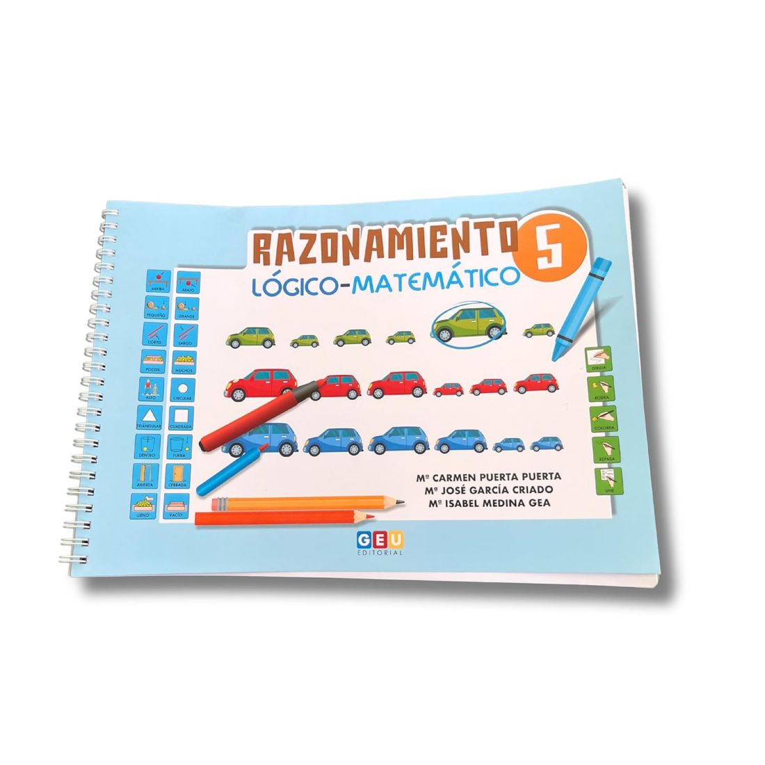 El cuaderno 5 de Razonamiento lógico-matemático está diseñado para niños a partir de los 5 años, ofreciendo una variedad de actividades que fomentan habilidades esenciales para su desarrollo cognitivo. A través de este cuaderno, tu hijo o hija aprenderá a distinguir y comprender formas geométricas como el círculo, cuadradado y triángulo, además de conceptos básicos y fundamentales en matemáticas.