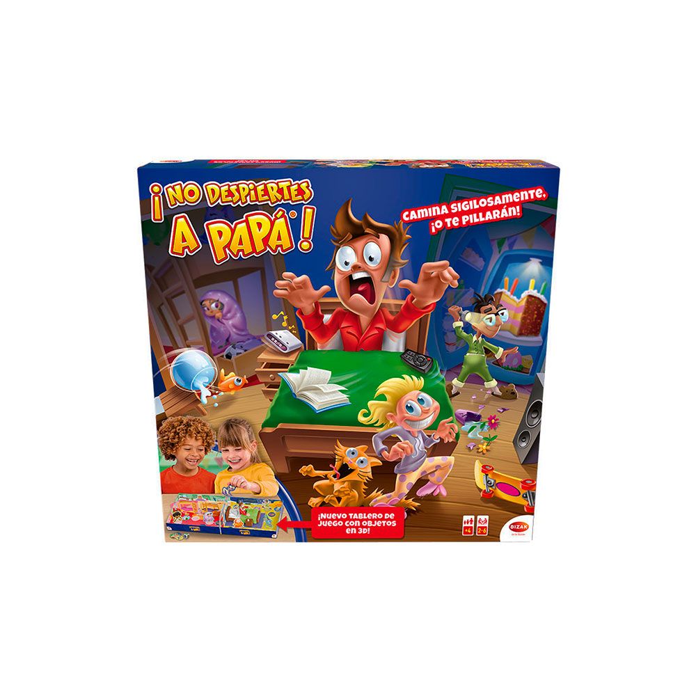 Lanza el dado y mueve a tu personaje hacia delante y avanza por las habitaciones. Muévete despacito y de puntillas para intentar llegar a la nevera mientras Papá duerme en su cama. Pero ¡cuidado con las cosas ruidosas!, porque si caes en sus casillas tendrás que pulsar el despertador de papá y si se despierta… ¡a la cama te mandará y tendrás que volver a empezar! Pero, si eres sigiloso y rápido, seguro que no se despertará.