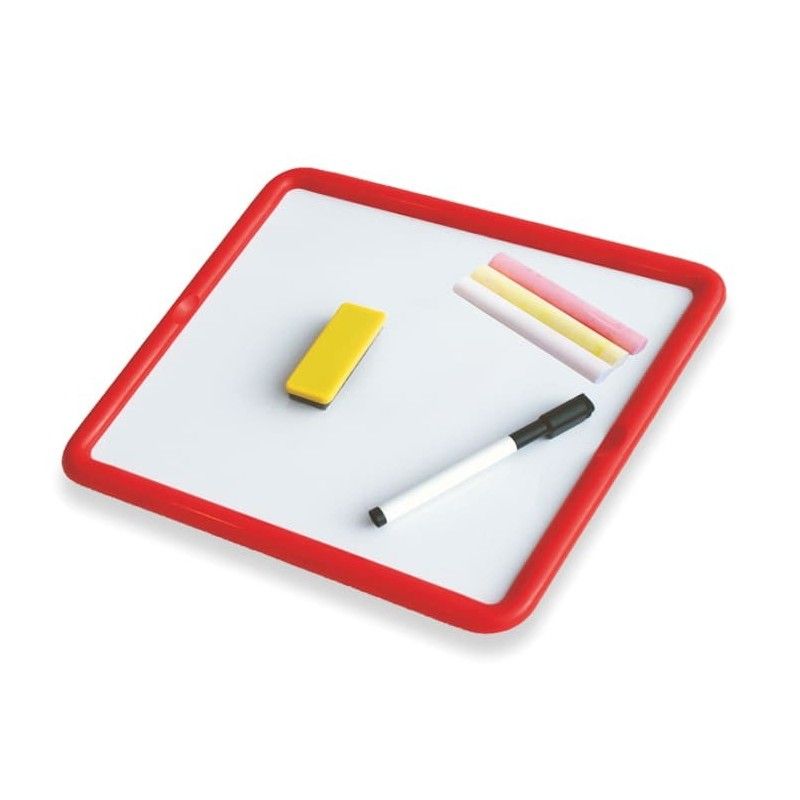 Gracias a sus dos superficies magnéticas, facilita actividades variadas que favorecen la creatividad, la expresión y el desarrollo de habilidades básicas en el aula. Incluye borrador, tizas y rotulador borrable.